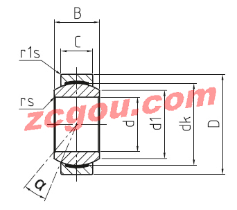 | type | d (mm) | d1 (mm) | D (mm) | dk (mm) | B (mm) | C (mm) | rs (mm) | rs1 (mm) | tilt angle alpha (°) | weight (kg) | basic load rating dyn C (kN) | basic load rating stat Co (kN) | radial clearance CN (?m) | d (mm) |