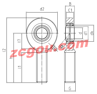 | type | d (mm) | d1 (mm) | d2 (mm) | dk (mm) | G | B (mm) | C1 (mm) | l1 (mm) | l2 (mm) | l7 (mm) | h (mm) | tilt angle alpha (°) | weight (kg) | basic load rating dyn C (kN) | basic load rating stat Co (kN) | radial clearance CN (?m) | d (mm) |